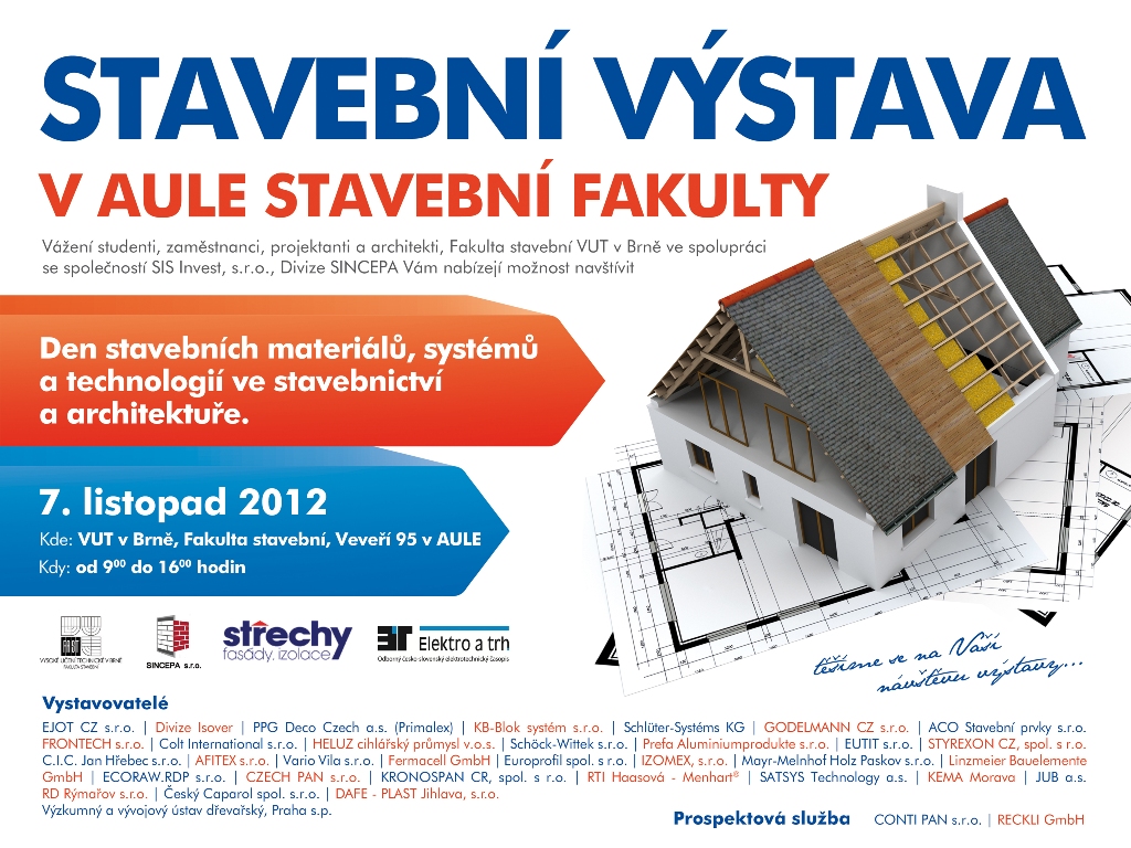 Výstava proběhne 7.11.2012 od 9:00 do 16:00 na VUT, fakulta stavební v Aule, Veveří 95, Brno